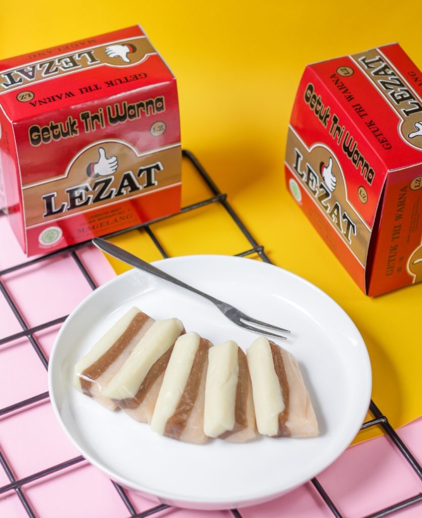 Getuk lezat memiliki ciri khas tiga lapis warna yang menarik tekstur lembut dan rasa manis. Getuk lezat sudah memiliki perizinan sertifikat halal baik di konsumsi atau untuk hidangan dapat disajikan dengan tambahan taburan kelapa parut