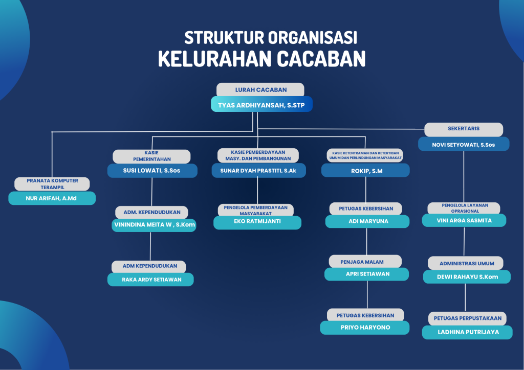 Kelurahan Cacaban terdiri dari 74 RT dan 12 RW.
